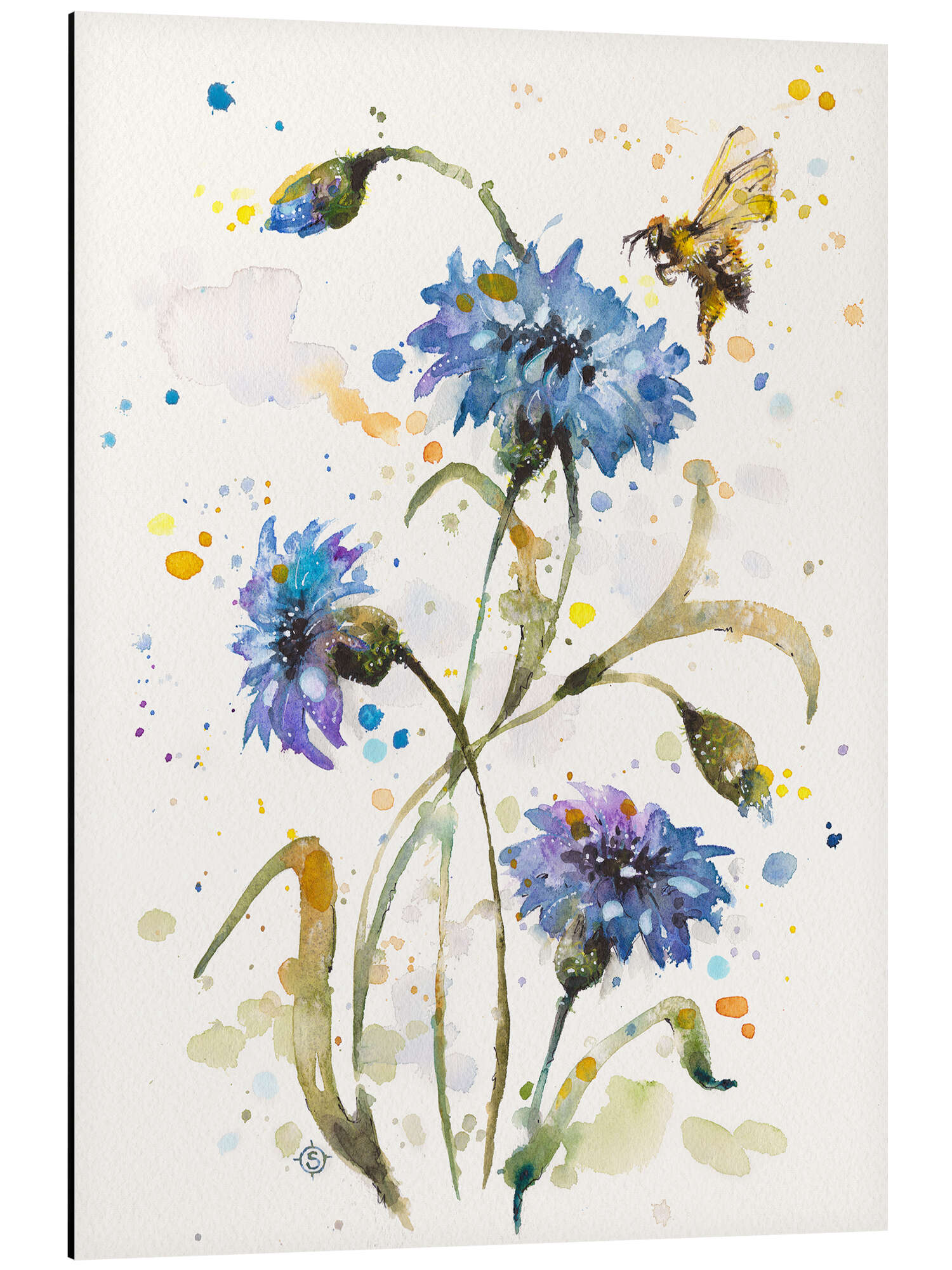 Posterlounge   Wandbilder   Malerei   Aquarell Malerei   Sillier Than Sally   Magnettafel Kornblumen und Hummel