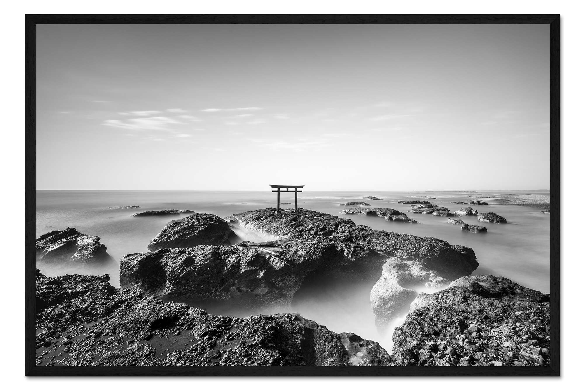 Posterlounge   Wandbilder   Schwarz-Weiß   Jan Christopher Becke   Gerahmter Kunstdruck Torii am Meer