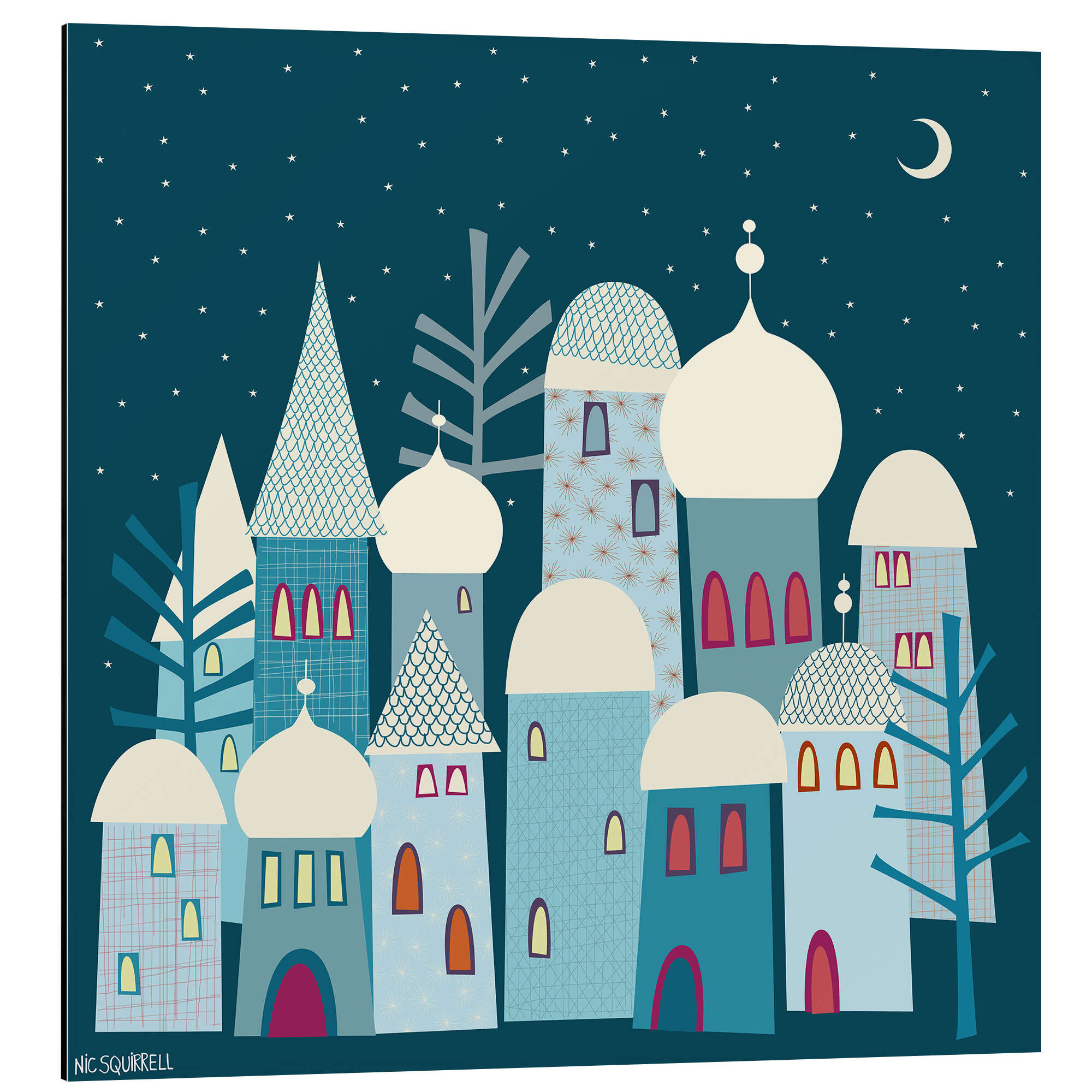 Posterlounge   Wandbilder   Illustration   Nic Squirrell   Magnettafel Schneebedeckte Dächer