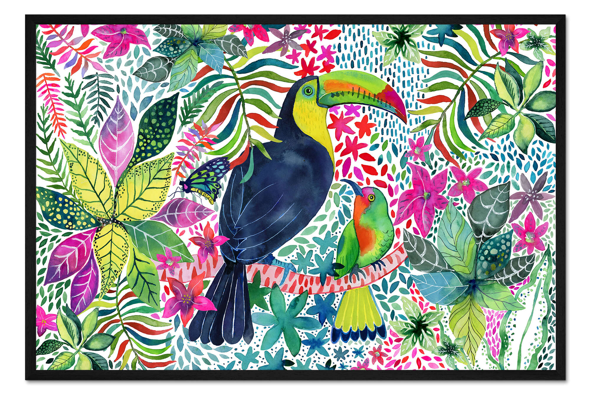 Posterlounge   Wandbilder   Illustration   Janet Broxon   Gerahmter Kunstdruck Tukan im Dschungel