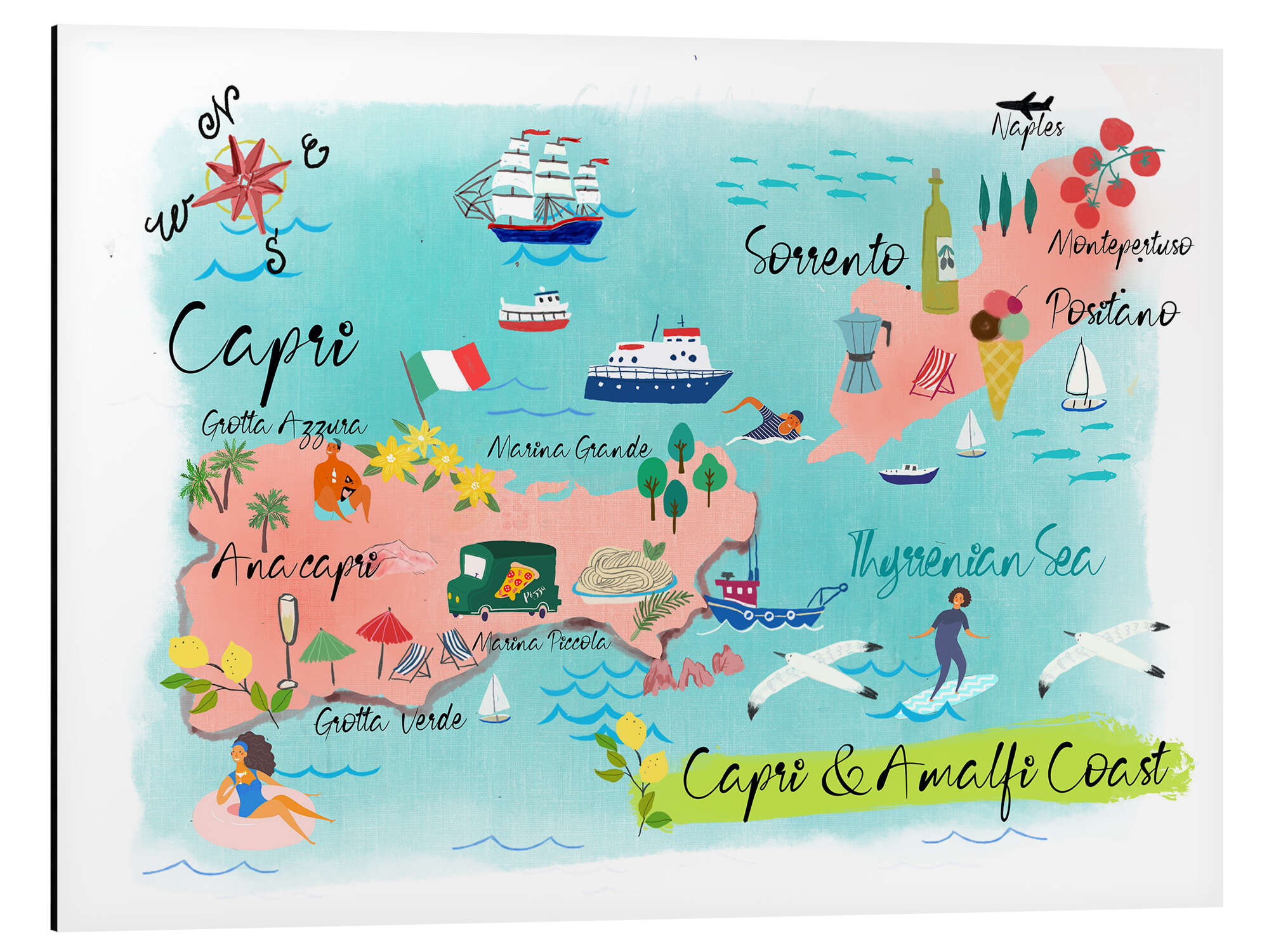 Posterlounge   Wandbilder   Illustration   Tori Taika   Magnettafel Capri und Amalfiküste Karte