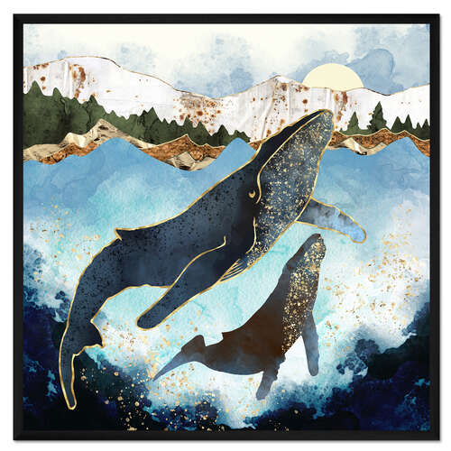 Posterlounge   Wandbilder   Tiere   Meerestiere   Wale   SpaceFrog Designs   Gerahmter Kunstdruck Walfamilie Mutter und Kind