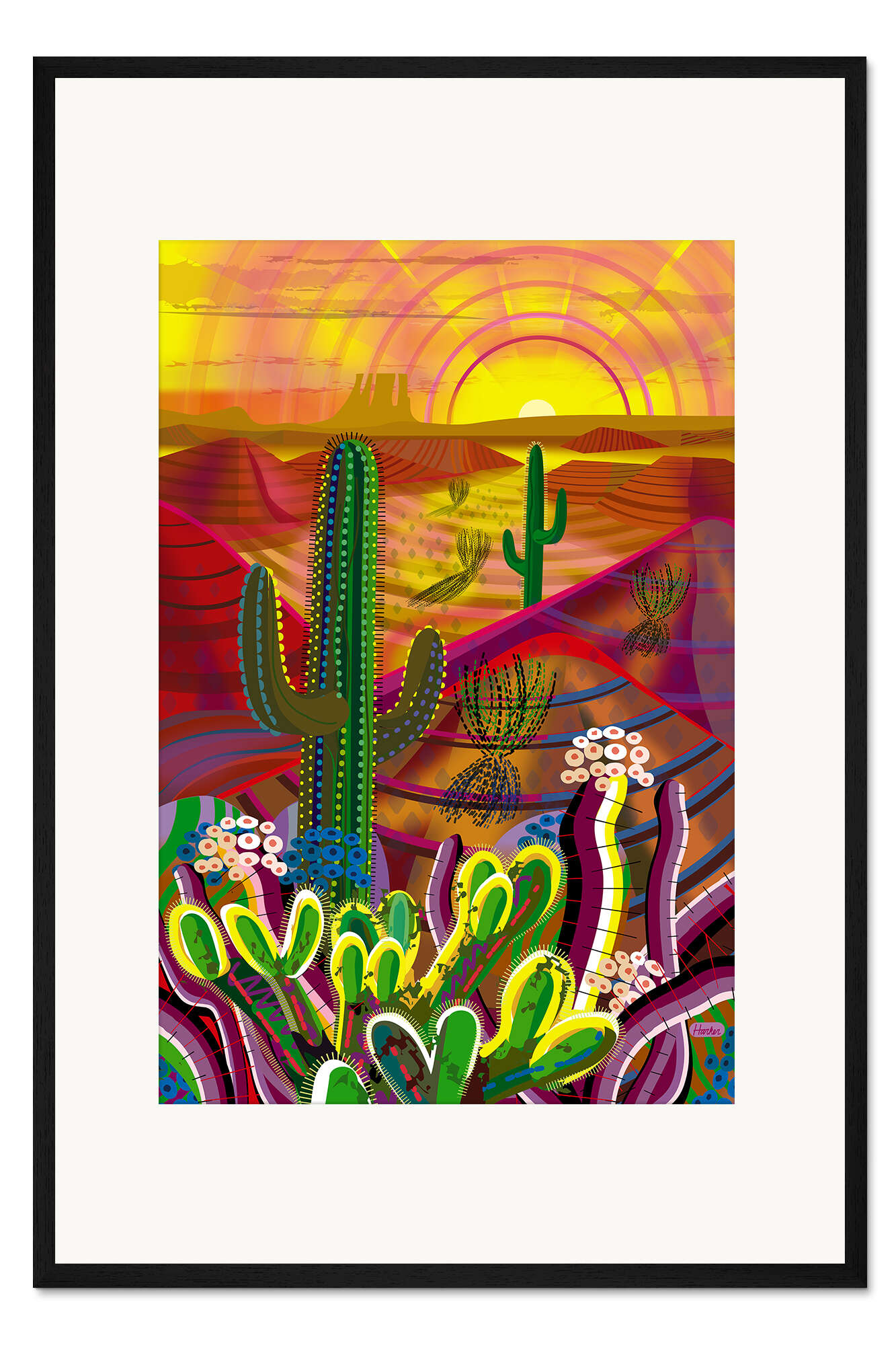 Posterlounge   Wandbilder   Botanik   Pflanzen   Kakteen   Charles Harker   Gerahmter Kunstdruck Kakteen im Sonnenaufgang