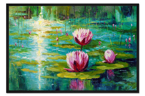 Posterlounge   Wandbilder   Grün   Olha Darchuk   Gerahmter Kunstdruck Lilien im Teich