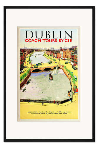 Posterlounge   Wandbilder   Gelb   Vintage Travel Collection   Gerahmter Kunstdruck Dublin, Busreisen (englisch)