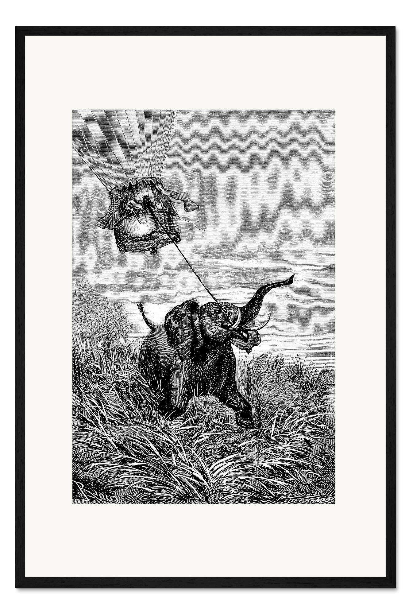 Posterlounge   Wandbilder   Illustration   Edouard Riou   Gerahmter Kunstdruck Fünf Wochen im Ballon