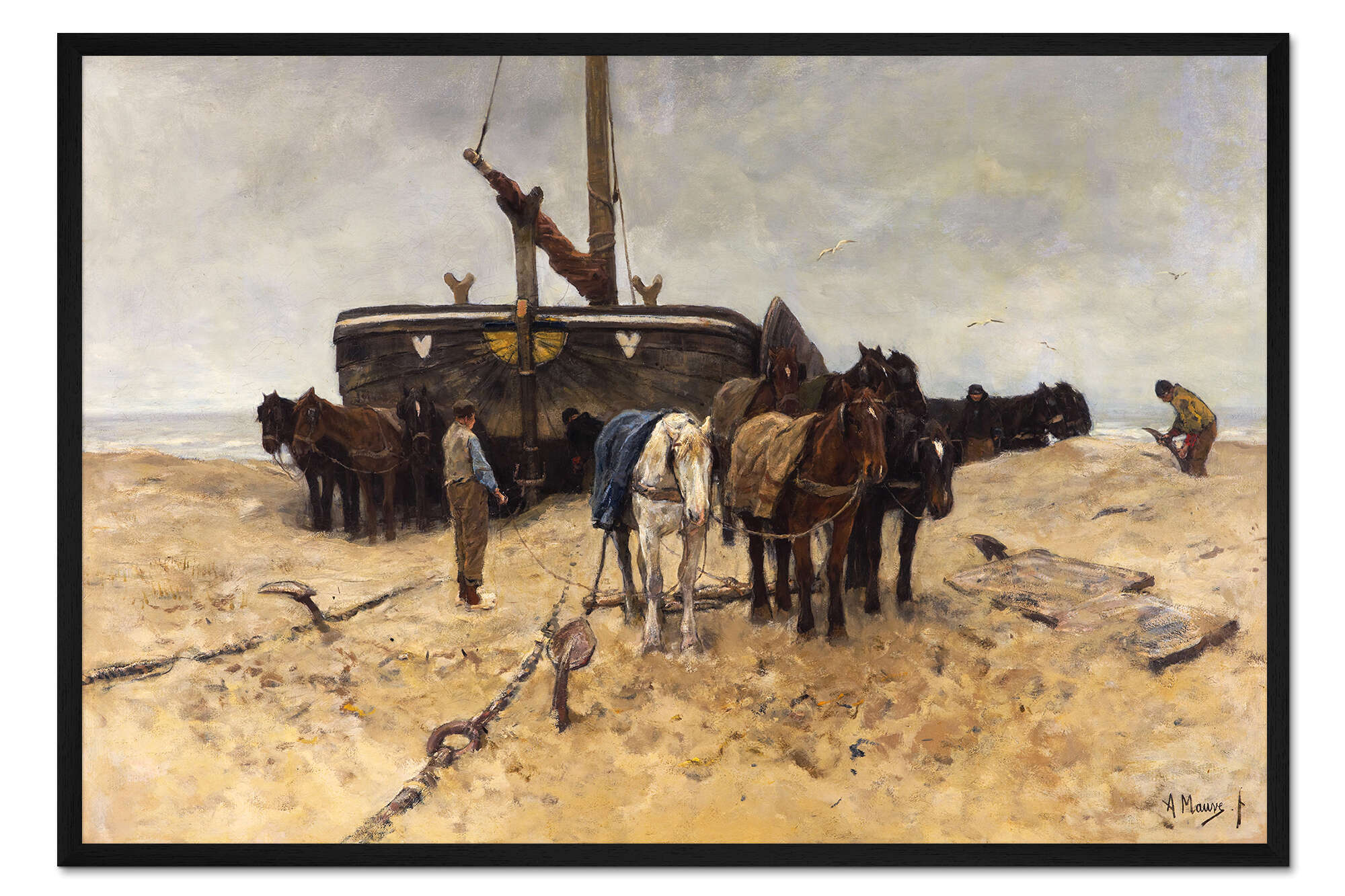 Posterlounge   Wandbilder   Fahrzeuge   Boote   Anton Mauve   Gerahmter Kunstdruck Fischerboot am Strand