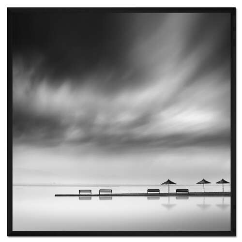 Posterlounge   Wandbilder   Schwarz-Weiß   George Digalakis   Gerahmter Kunstdruck Bänke und Regenschirme