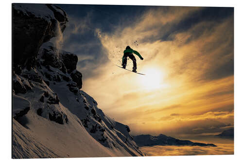 Magnettafel Snowboarden in der Dämmerung