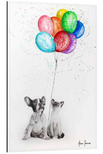 Posterlounge   Wandbilder   Illustration   Zeichnung & Skizze   Ashvin Harrison   Magnettafel Frenchie und Siamese mit bunten Ballons