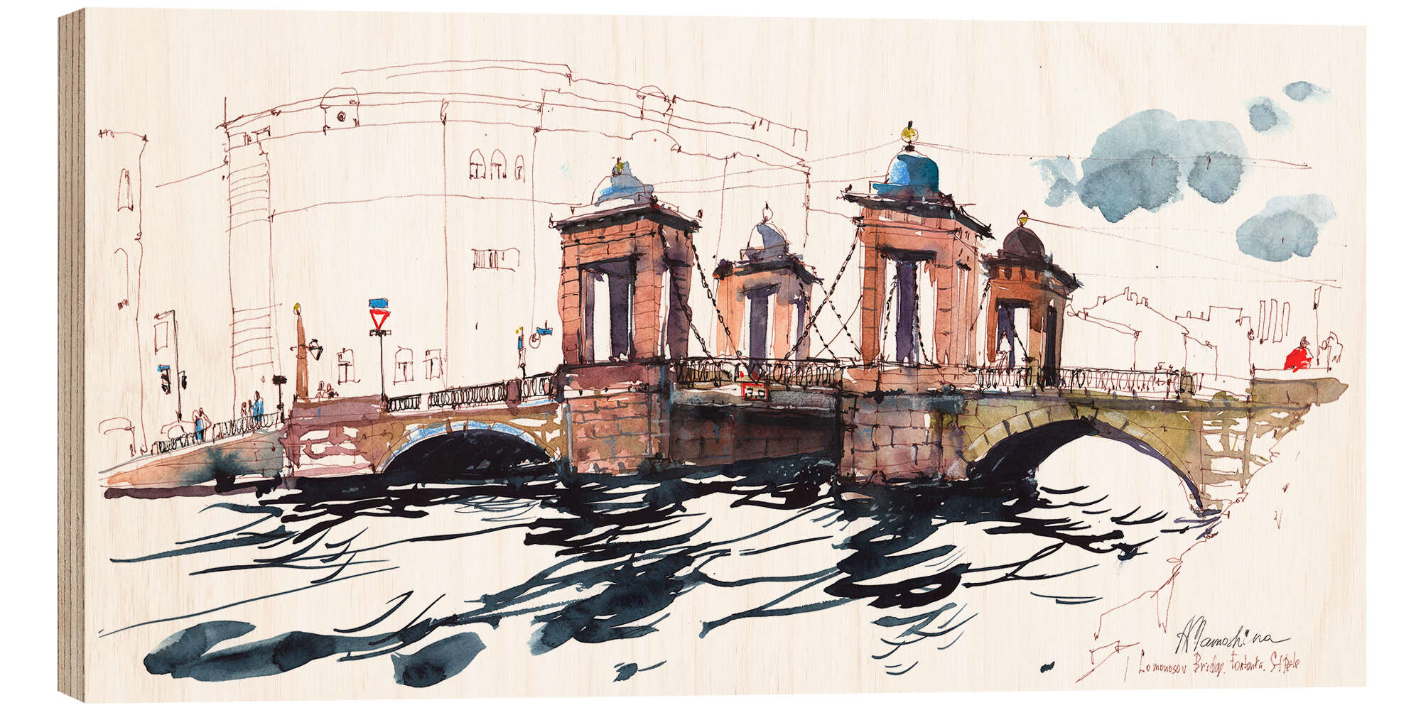 Posterlounge   Wandbilder   Architektur   Brücken   Anastasia Mamoshina   Holzbild Lomonossow-Brücke, Sankt Petersburg, Russland
