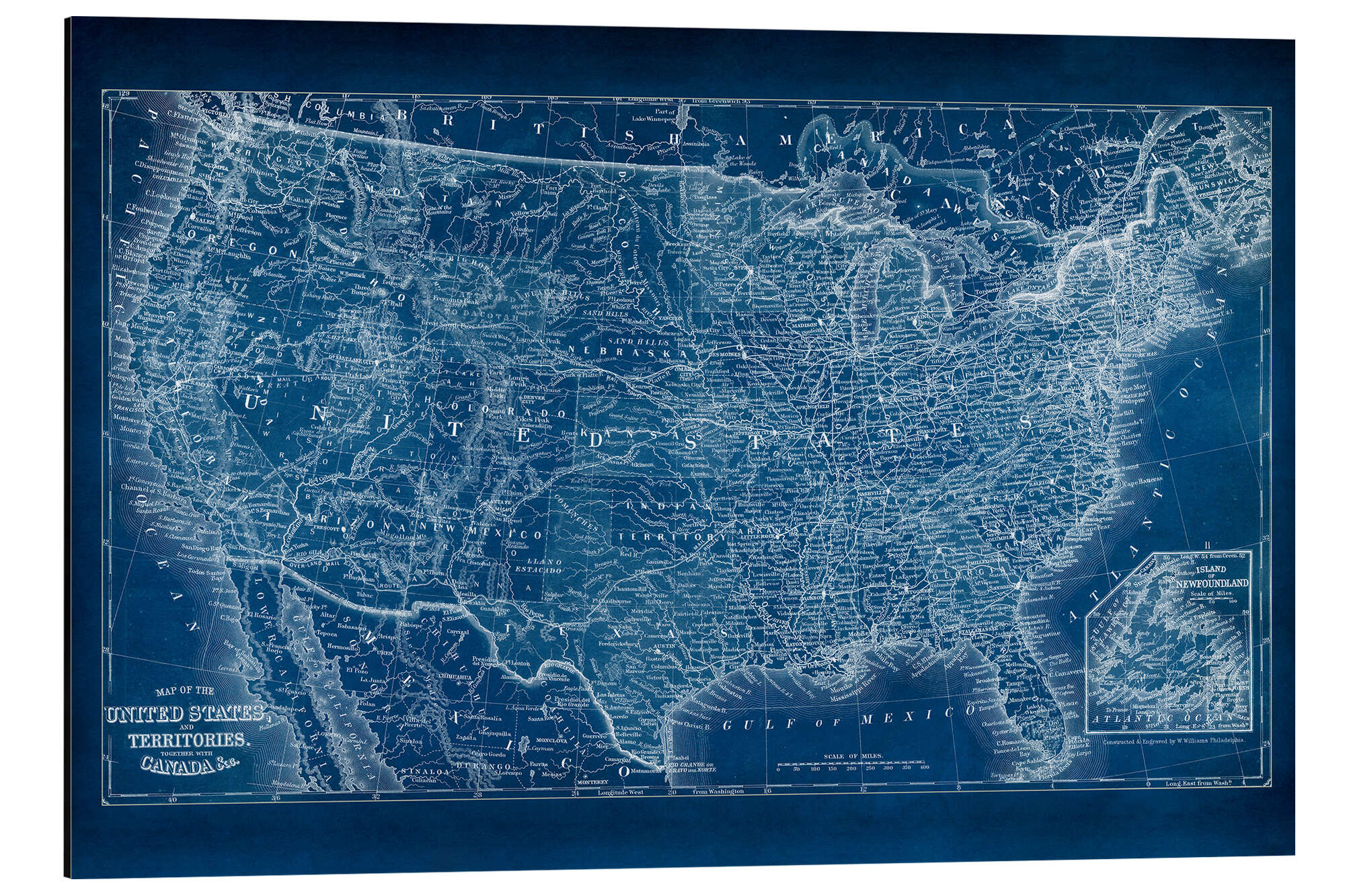 Magnettafel Amerika Blaupause