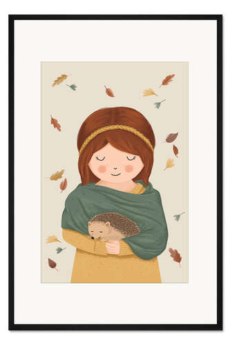 Posterlounge   Wandbilder   Illustration   Sandy Lohß   Gerahmter Kunstdruck Mädchen mit Igel