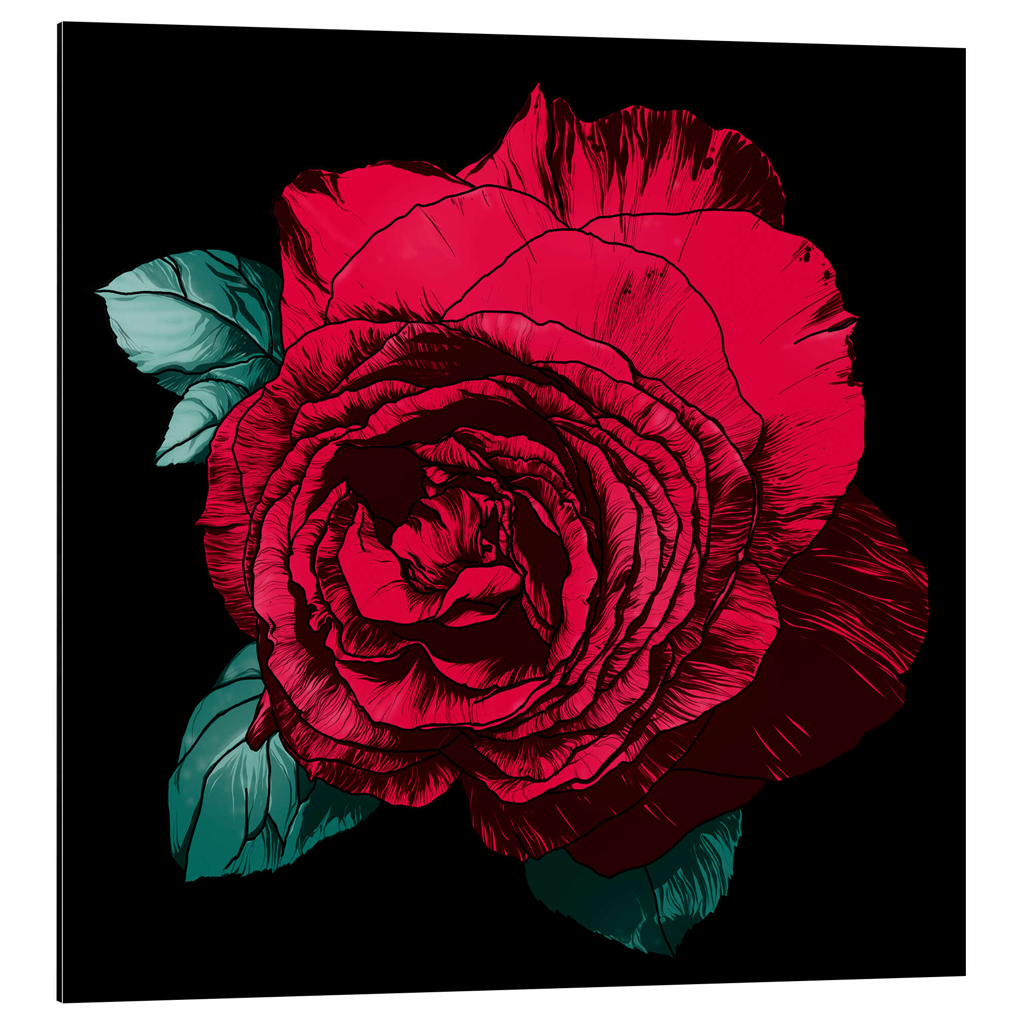 Posterlounge   Wandbilder   Grafikdesign   Floral   Sonia Nezvetaeva   Magnettafel Rote Rose auf Schwarz