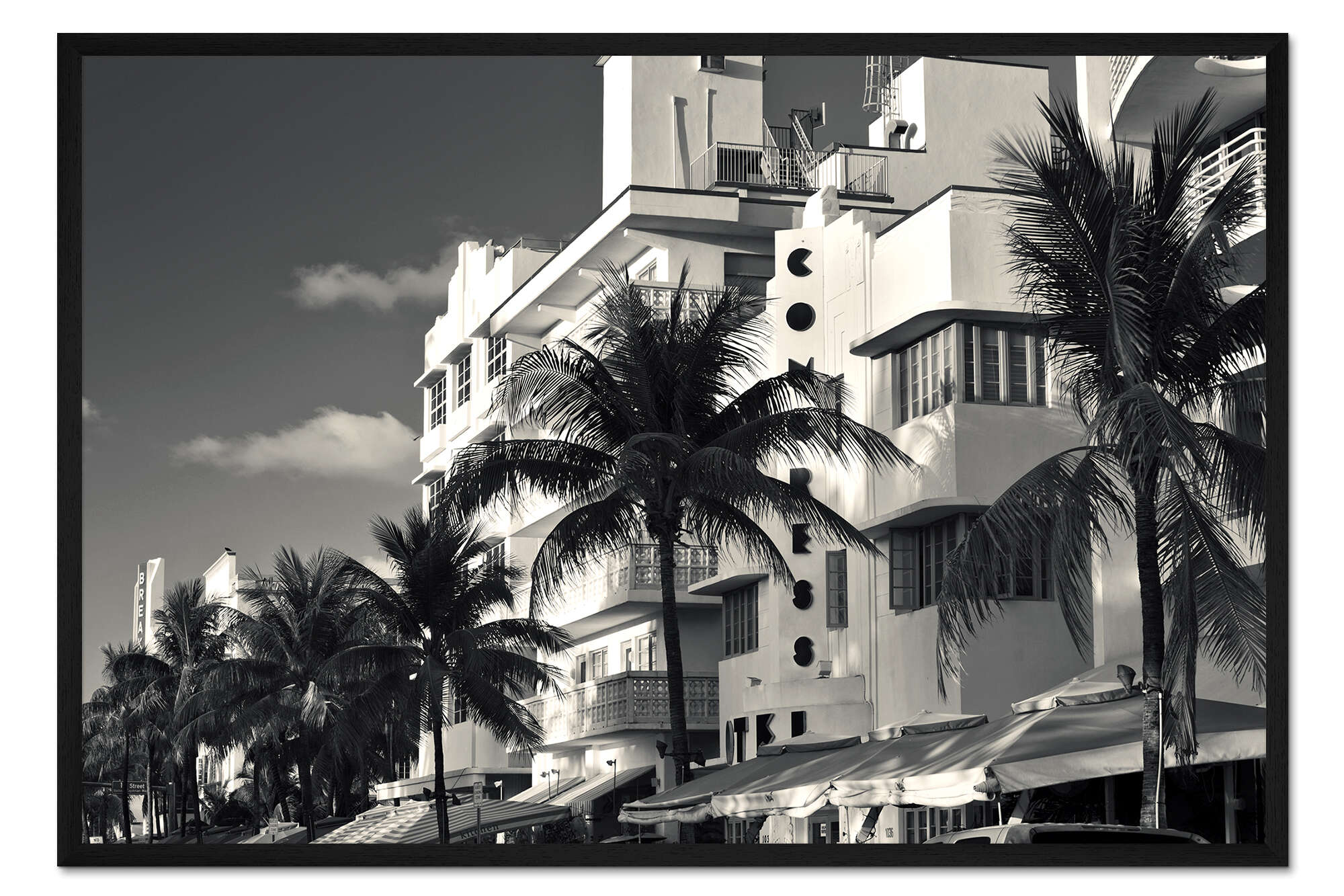 Posterlounge   Wandbilder   Schwarz-Weiß   Gerahmter Kunstdruck Palmen am Ocean Drive