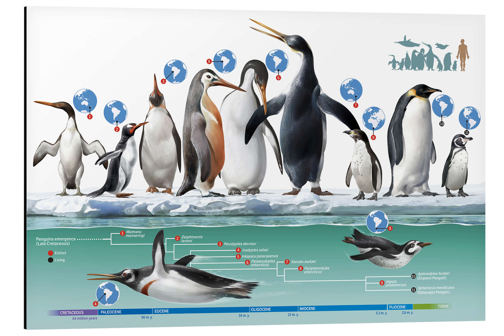 Posterlounge   Wandbilder   Illustration   Magnettafel Lebende und Ausgestorbene Pinguine