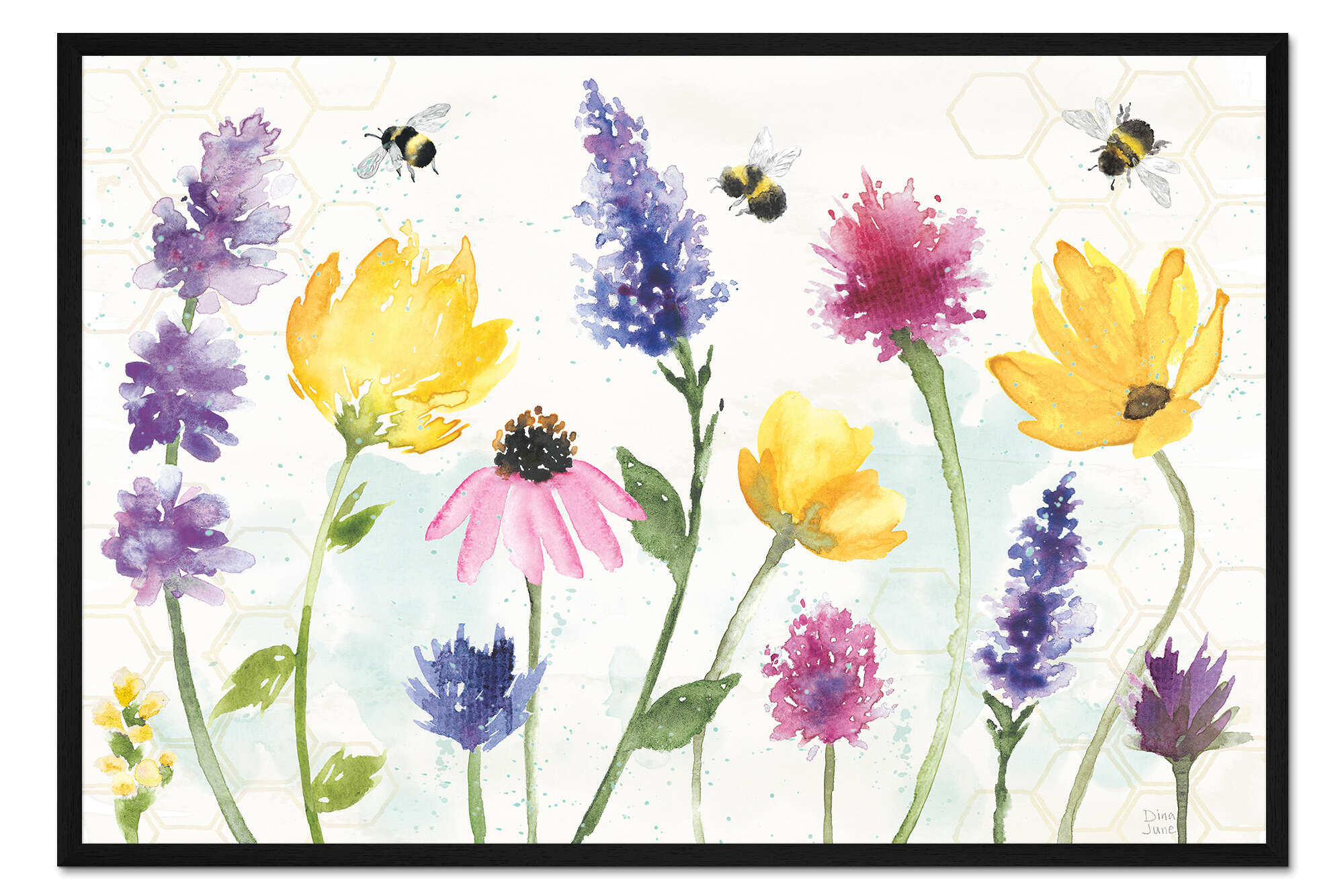 Posterlounge   Wandbilder   Malerei   Aquarell Malerei   Dina June   Gerahmter Kunstdruck Bienen-Harmonie I