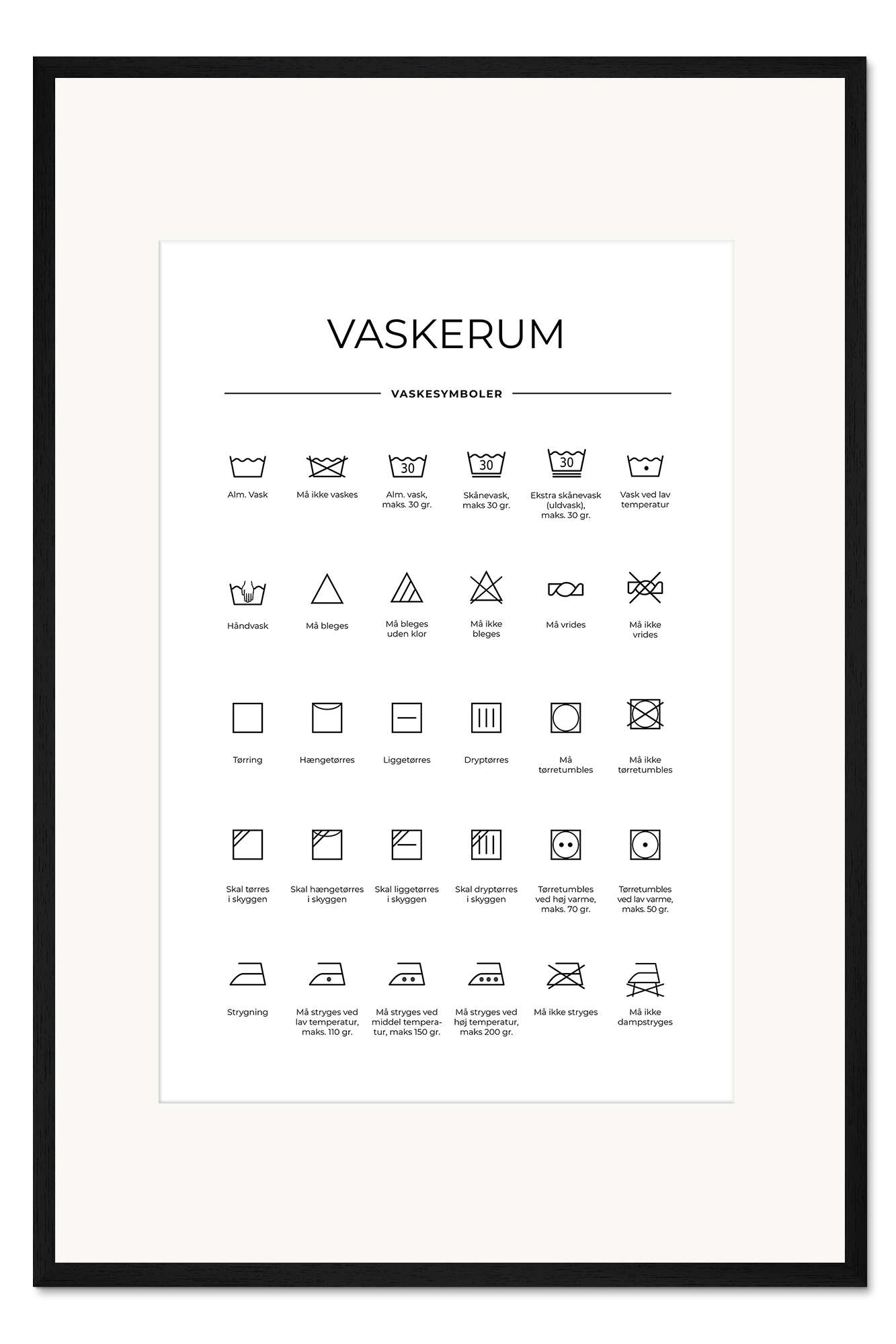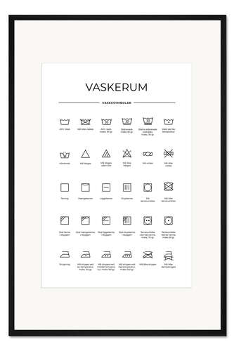 Posterlounge   Wandbilder   Schwarz-Weiß   Typobox   Gerahmter Kunstdruck Wasch- & Pflegesymbole (dänisch)