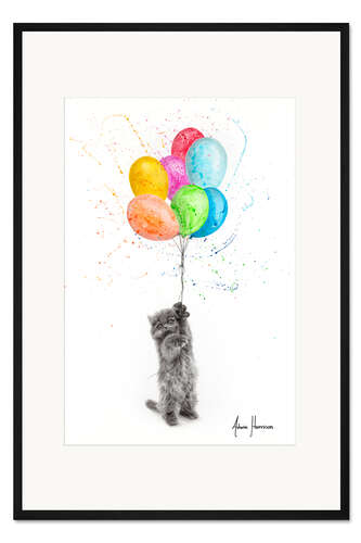 Posterlounge   Wandbilder   Illustration   Zeichnung & Skizze   Ashvin Harrison   Gerahmter Kunstdruck Freches Kätzchen mit Luftballons