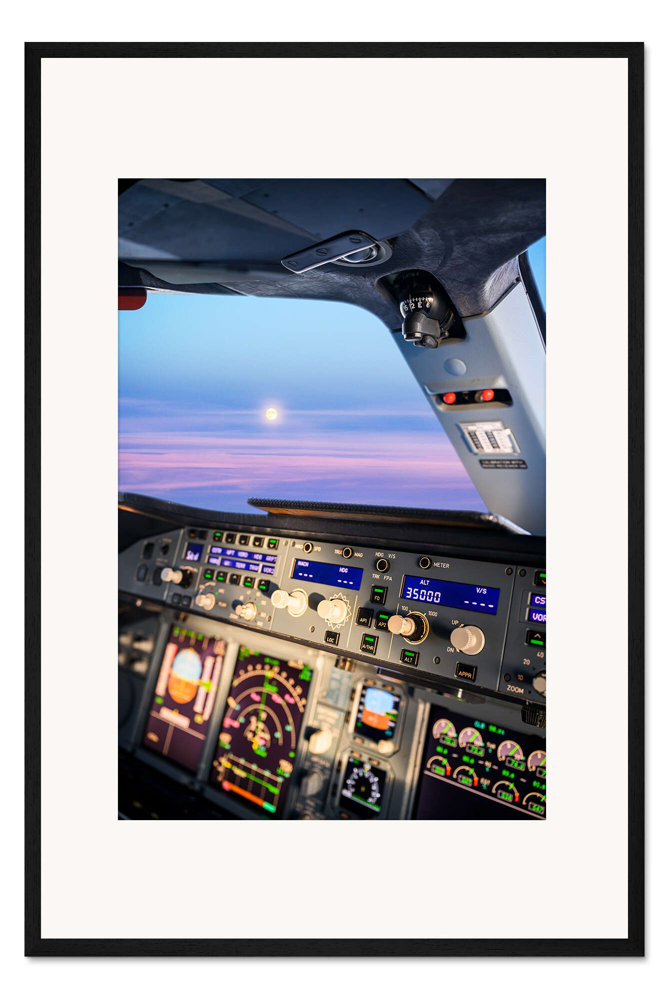 Posterlounge   Wandbilder   Fotografie   Ulrich Beinert   Gerahmter Kunstdruck Airbus A380 Cockpit mit aufgehendem Mond