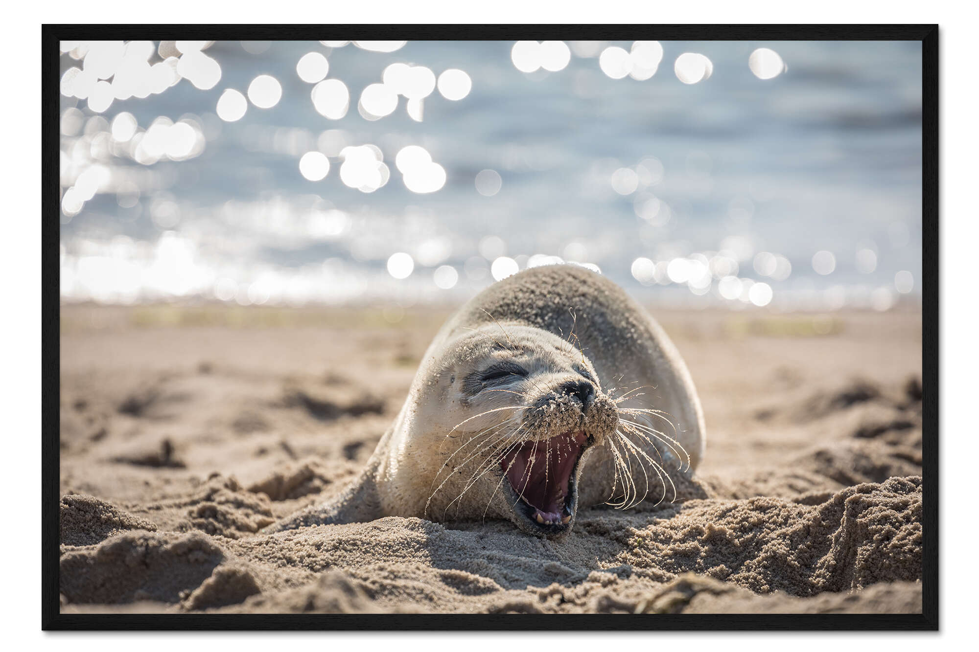 Posterlounge   Wandbilder   Fotografie   Christian Müringer   Gerahmter Kunstdruck Junge Robbe am Strand auf Sylt