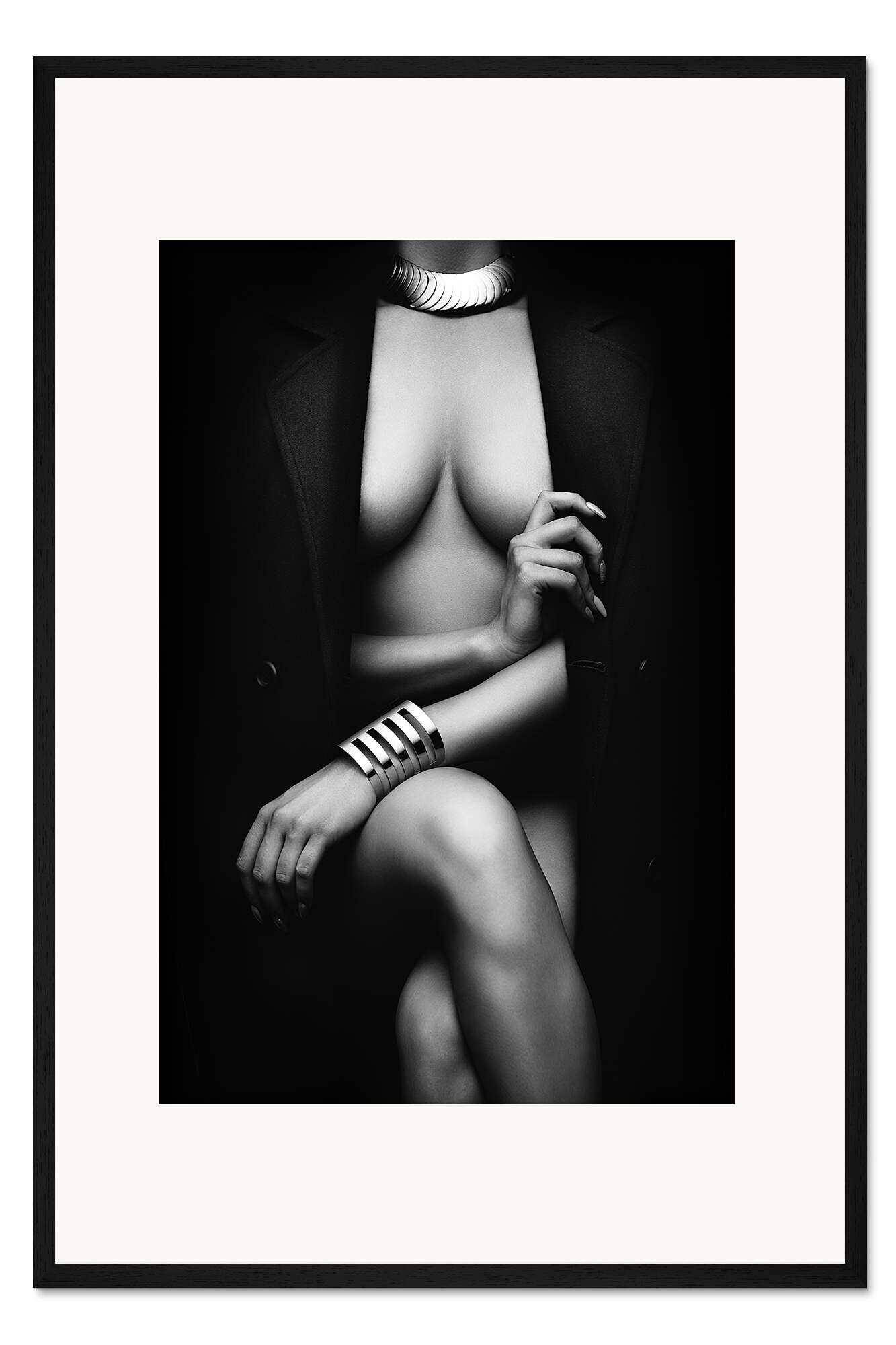 Posterlounge   Wandbilder   Schwarz-Weiß   Johan Swanepoel   Gerahmter Kunstdruck Frauenakt mit Mantel