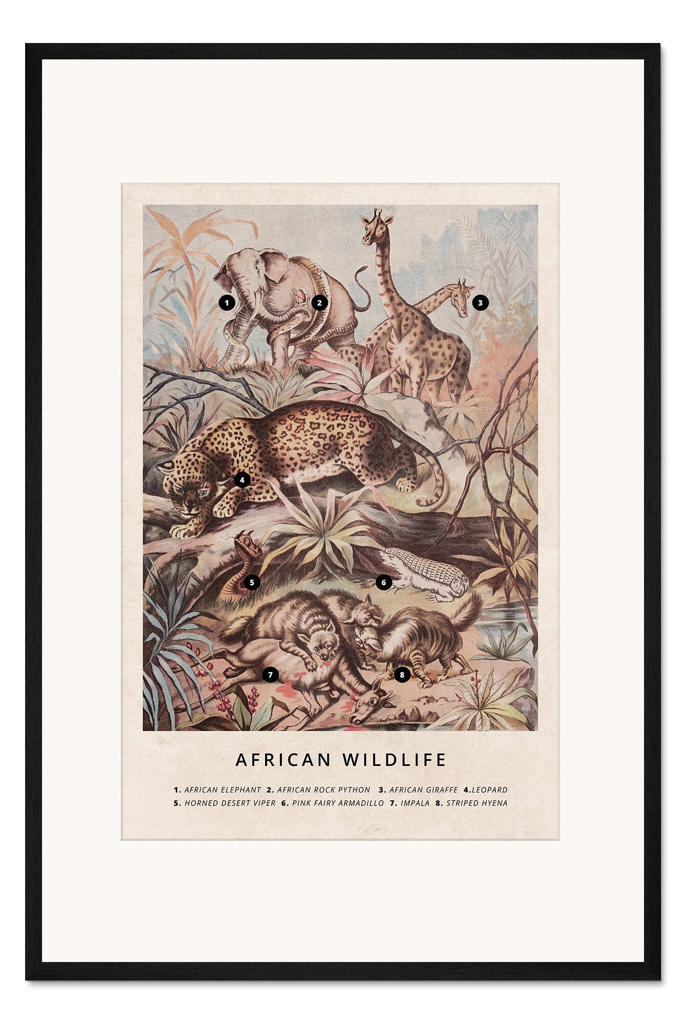 Posterlounge   Wandbilder   Illustration   Vintage Educational Collection   Gerahmter Kunstdruck Afrikanische Tierwelt (Vintage, Englisch)