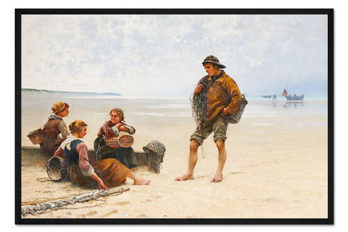 Posterlounge   Wandbilder   Landschaften   Strände & Küsten   August Hagborg   Gerahmter Kunstdruck Austernpflücker am Strand in der Bretagne