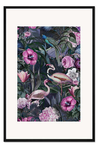 Posterlounge   Wandbilder   Illustration   Collage   Andrea Haase   Gerahmter Kunstdruck Flamingos im dunklen Dschungel