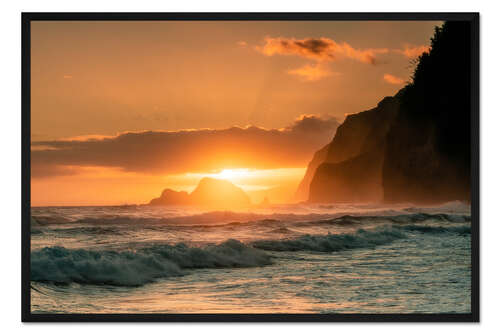 Posterlounge   Wandbilder   Fotografie   Road To Aloha   Gerahmter Kunstdruck Sonnenaufgang an der Küste von Hawaii