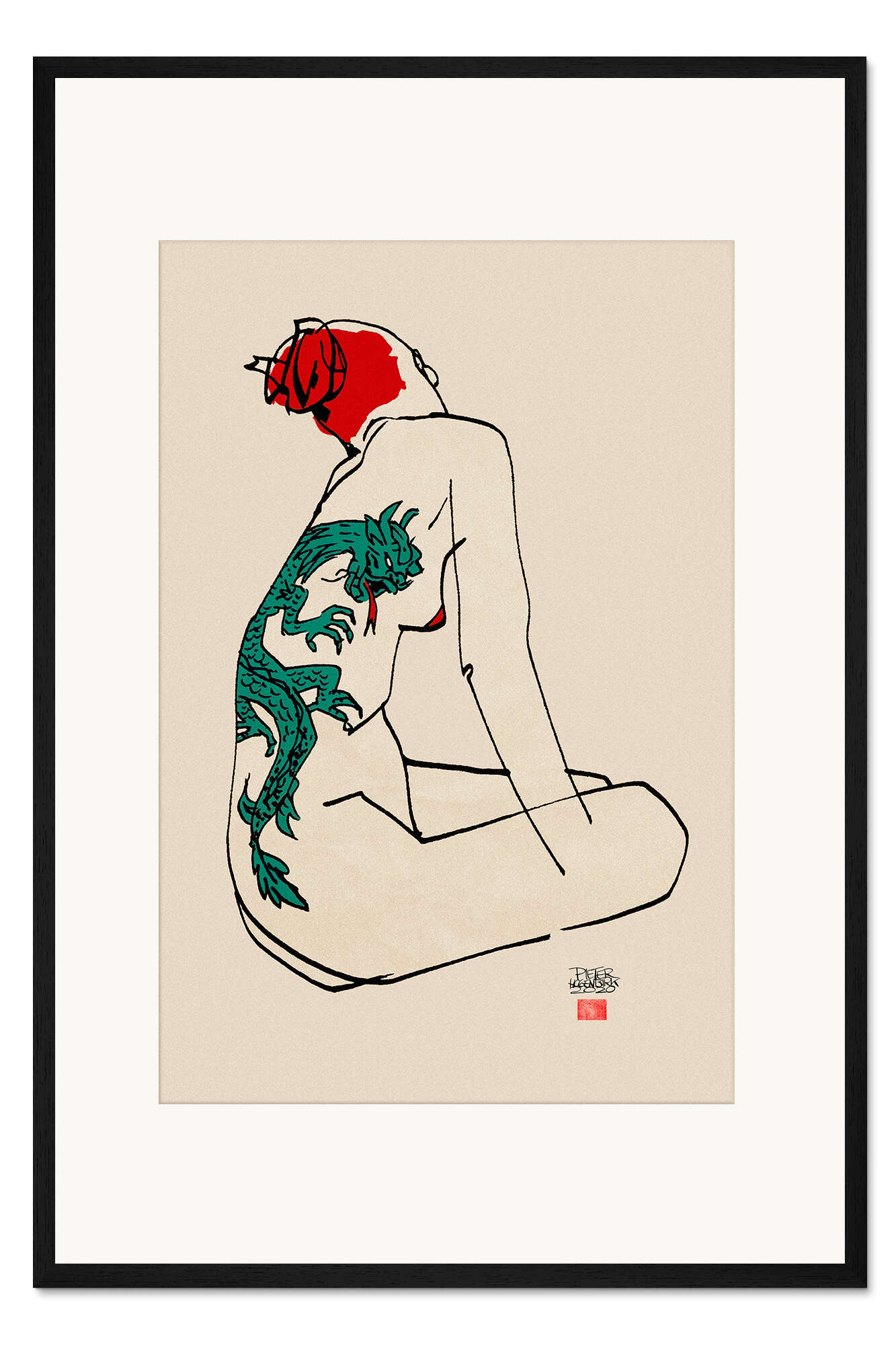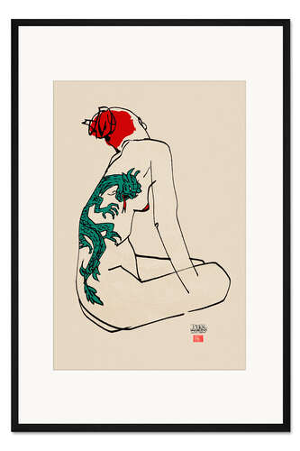 Posterlounge   Wandbilder   Menschen   Tattoos   Pieter Hogenbirk   Gerahmter Kunstdruck Akt mit Drachentattoo