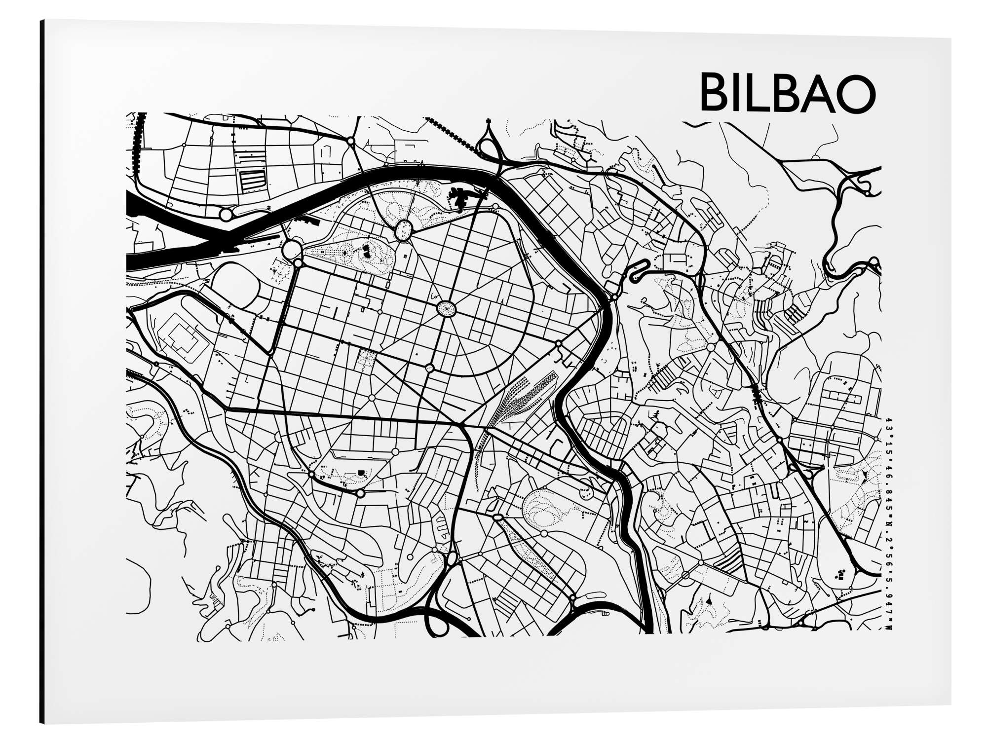 Posterlounge   Wandbilder   Schwarz-Weiß   44spaces   Magnettafel Karte von Bilbao