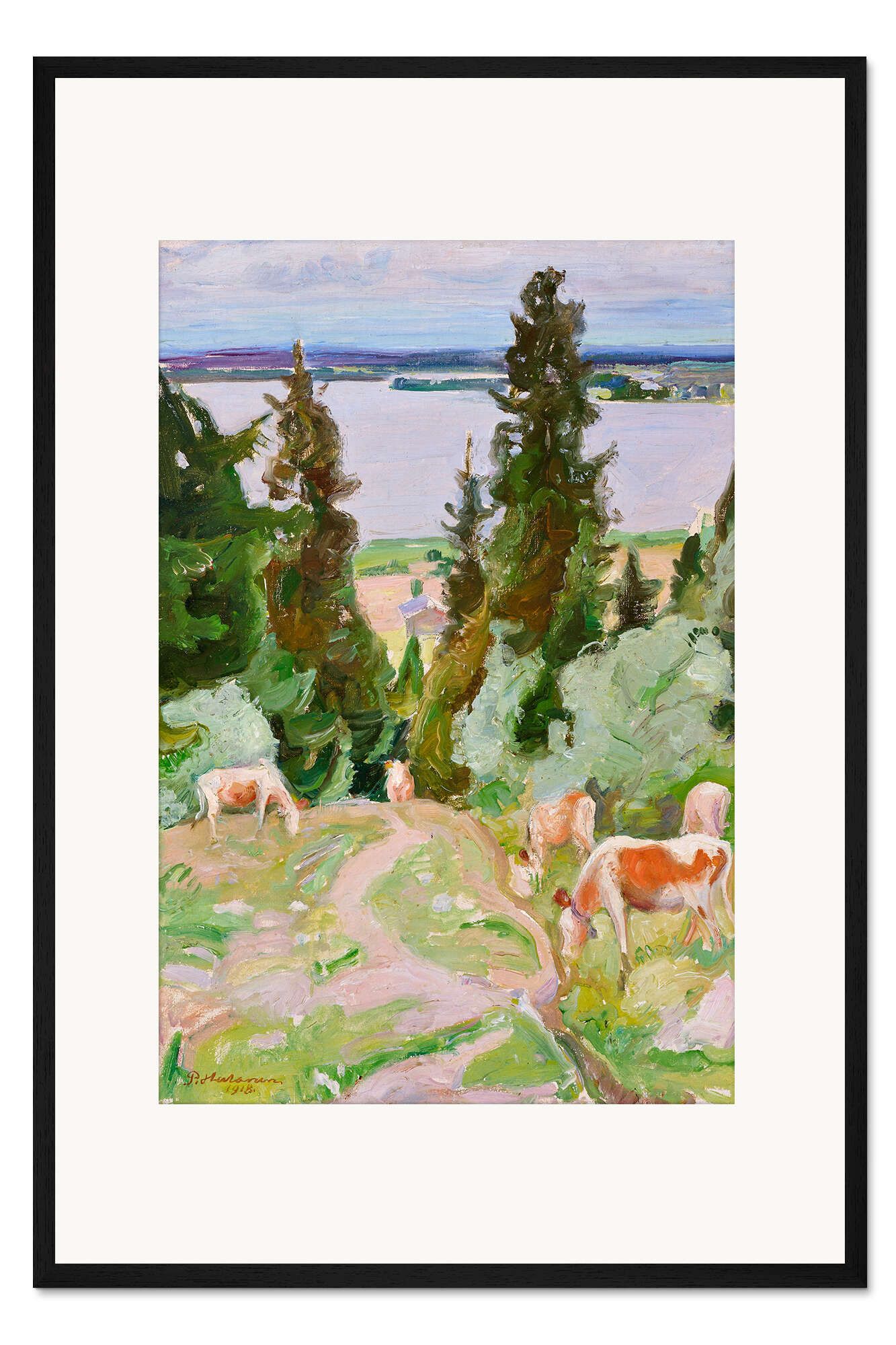 Posterlounge   Wandbilder   Grün   Pekka Halonen   Gerahmter Kunstdruck Kühe in Väisälänmäki