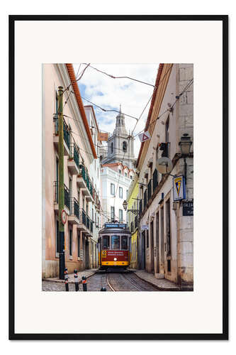Posterlounge   Wandbilder   Fotografie   Matteo Colombo   Gerahmter Kunstdruck Straßenbahn in der Altstadt von Lissabon