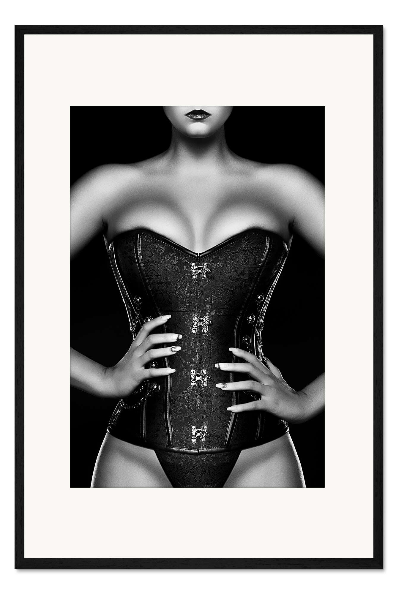 Posterlounge   Wandbilder   Schwarz-Weiß   Johan Swanepoel   Gerahmter Kunstdruck Frau mit schwarzem Korsett