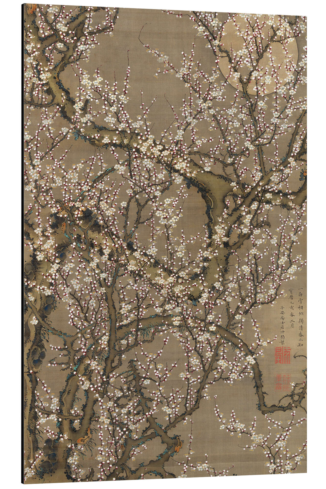 Magnettafel Weiße Pflaumenblüten und Mond