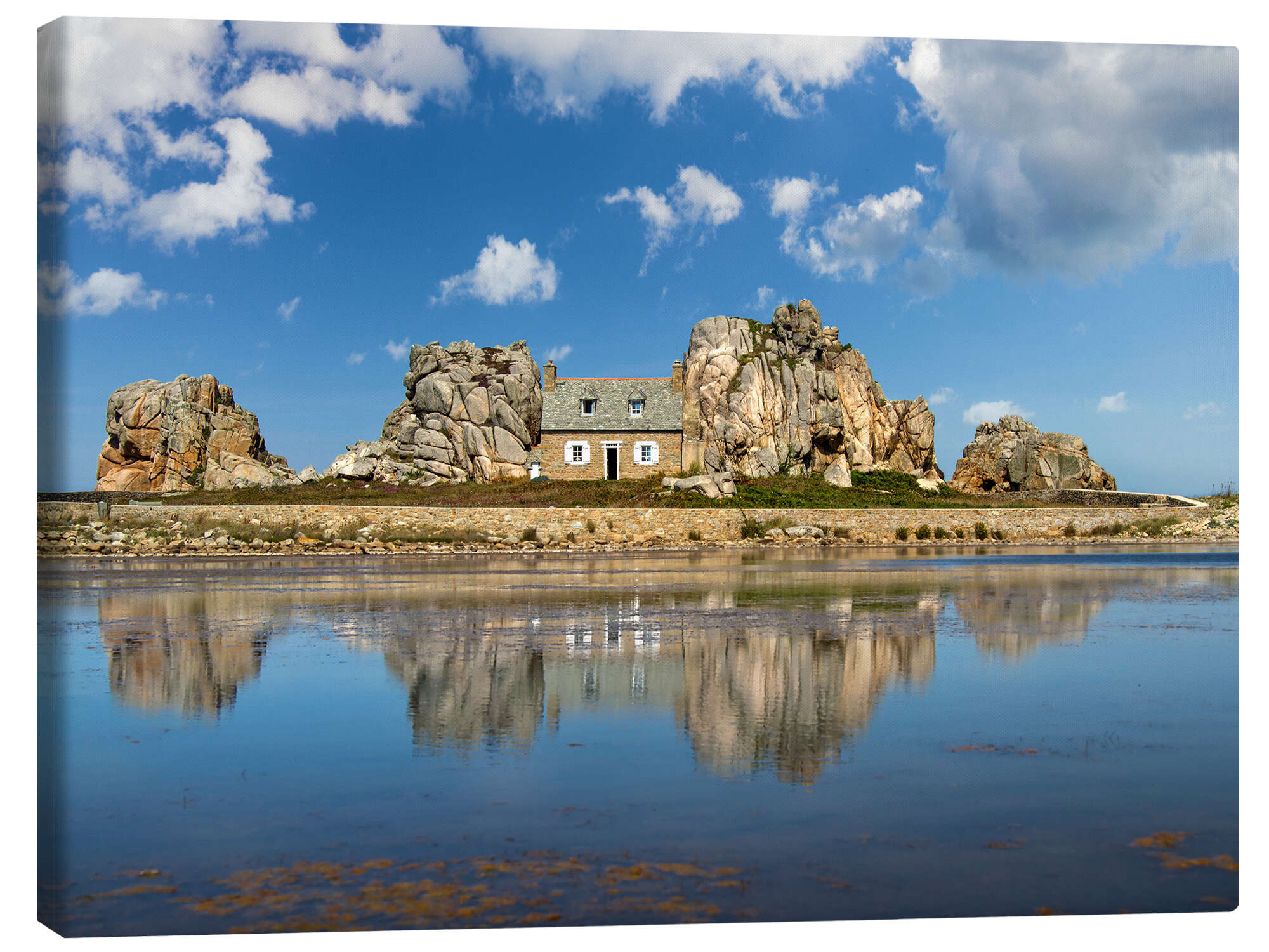Leinwandbild Das kleine Haus zwischen den Felsen, Bretagne
