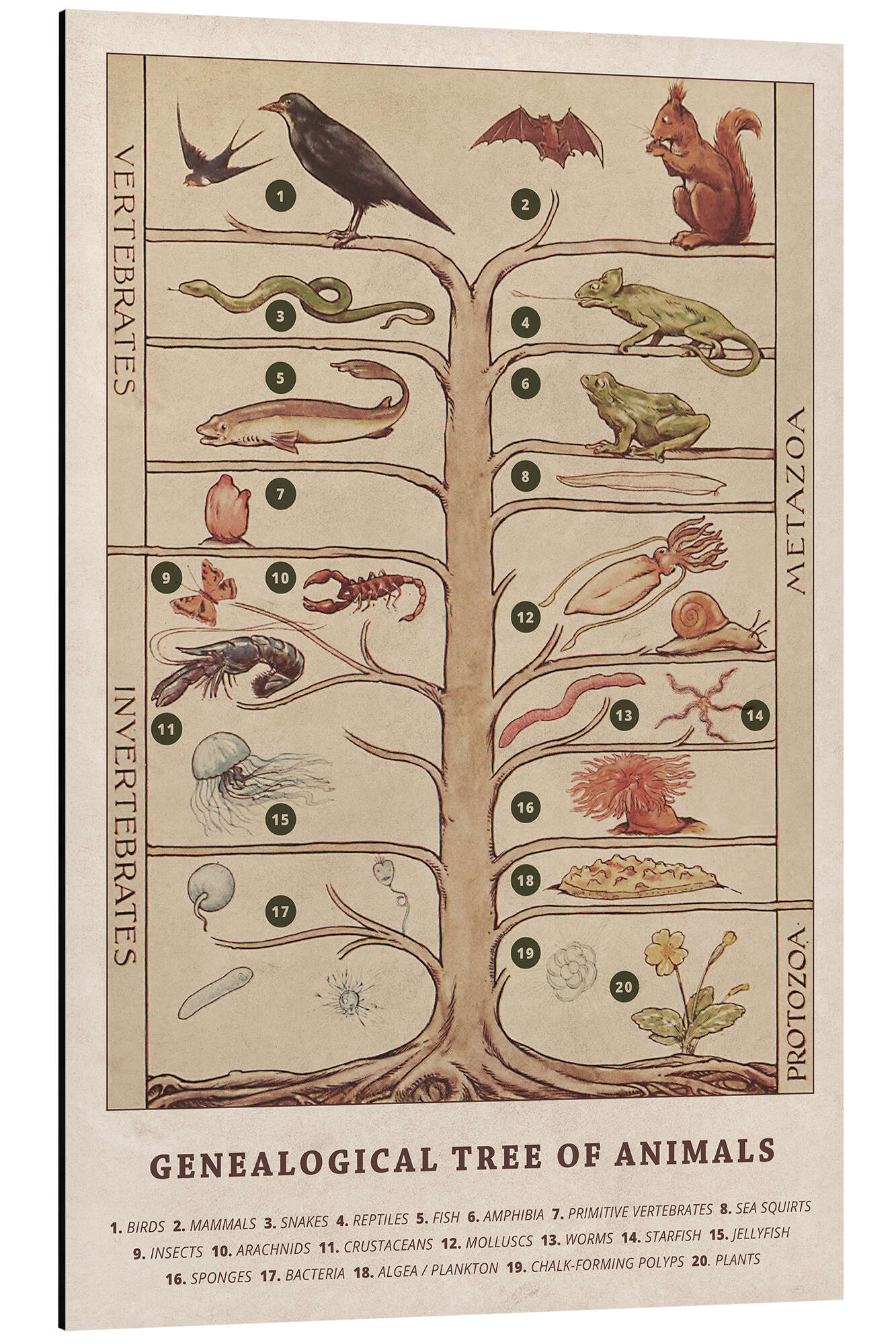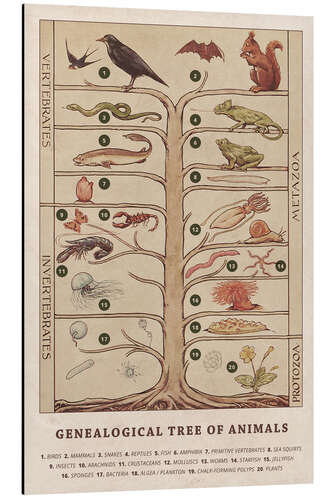 Posterlounge   Wandbilder   Illustration   Vintage Educational Collection   Magnettafel Stammbaum der Tiere (Englisch)