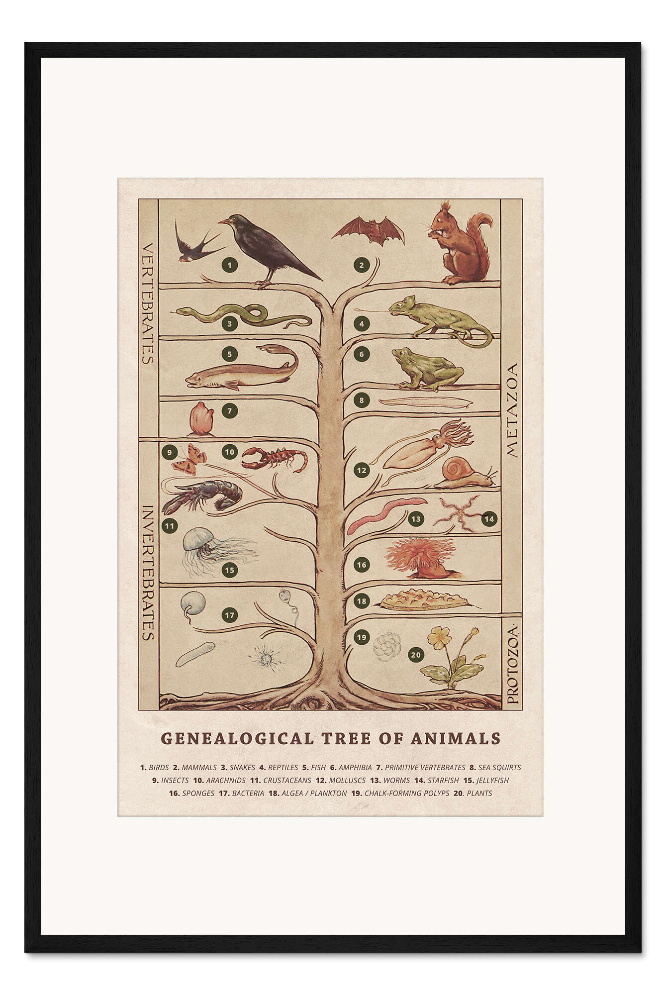 Posterlounge   Wandbilder   Illustration   Vintage Educational Collection   Gerahmter Kunstdruck Stammbaum der Tiere (Englisch)