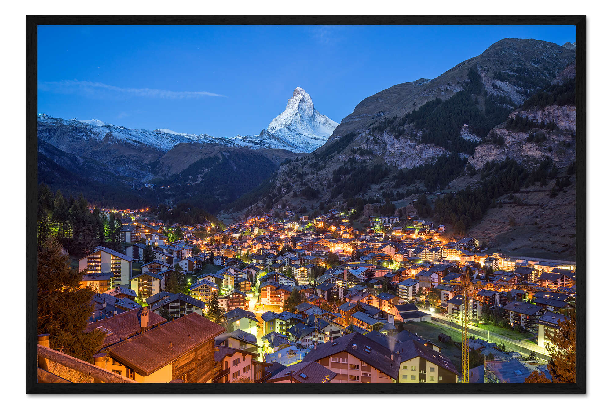 Posterlounge   Wandbilder   Fotografie   Jan Christopher Becke   Gerahmter Kunstdruck Blick auf Zermatt und Matterhorn bei Nacht