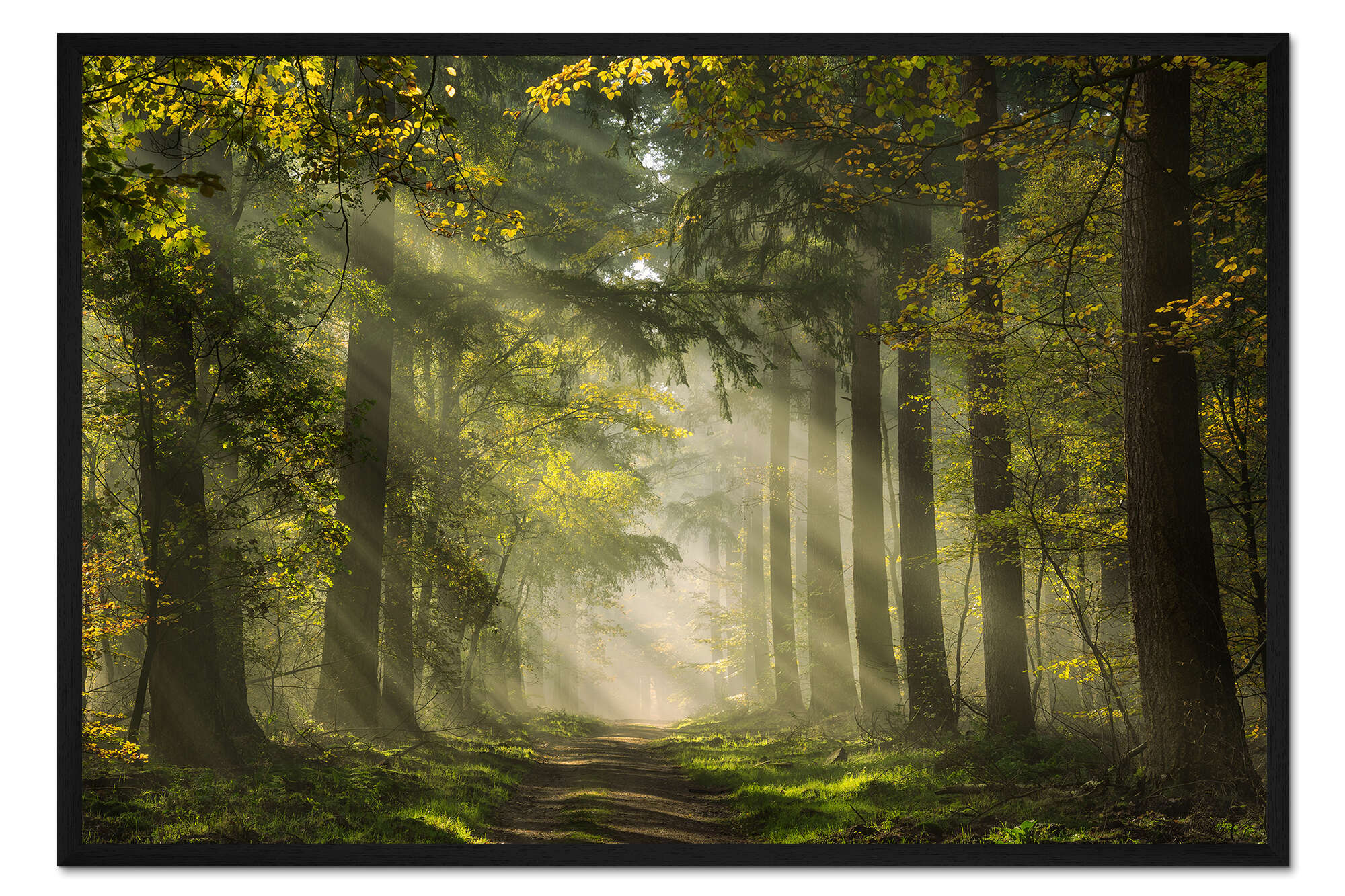 Posterlounge   Wandbilder   Botanik   Bäume   Martin Podt   Gerahmter Kunstdruck Niederländischer Wald mit schönen Sonnenstrahlen