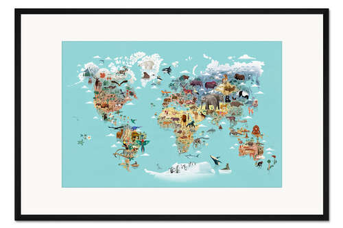Posterlounge   Wandbilder   Illustration   Dieter Braun   Gerahmter Kunstdruck Weltkarte der Tiere