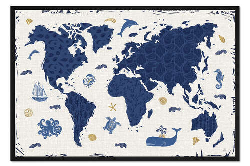 Posterlounge   Wandbilder   Karten   Land- & Weltkarten   Daphne Brissonnet   Gerahmter Kunstdruck Indigo World Map