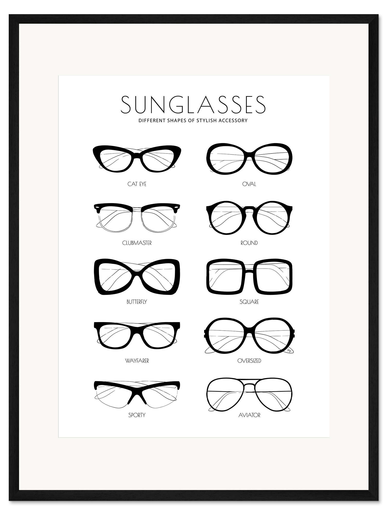 Posterlounge   Wandbilder   Grafikdesign   Martina   Gerahmter Kunstdruck Sonnenbrillen Arten (englisch)