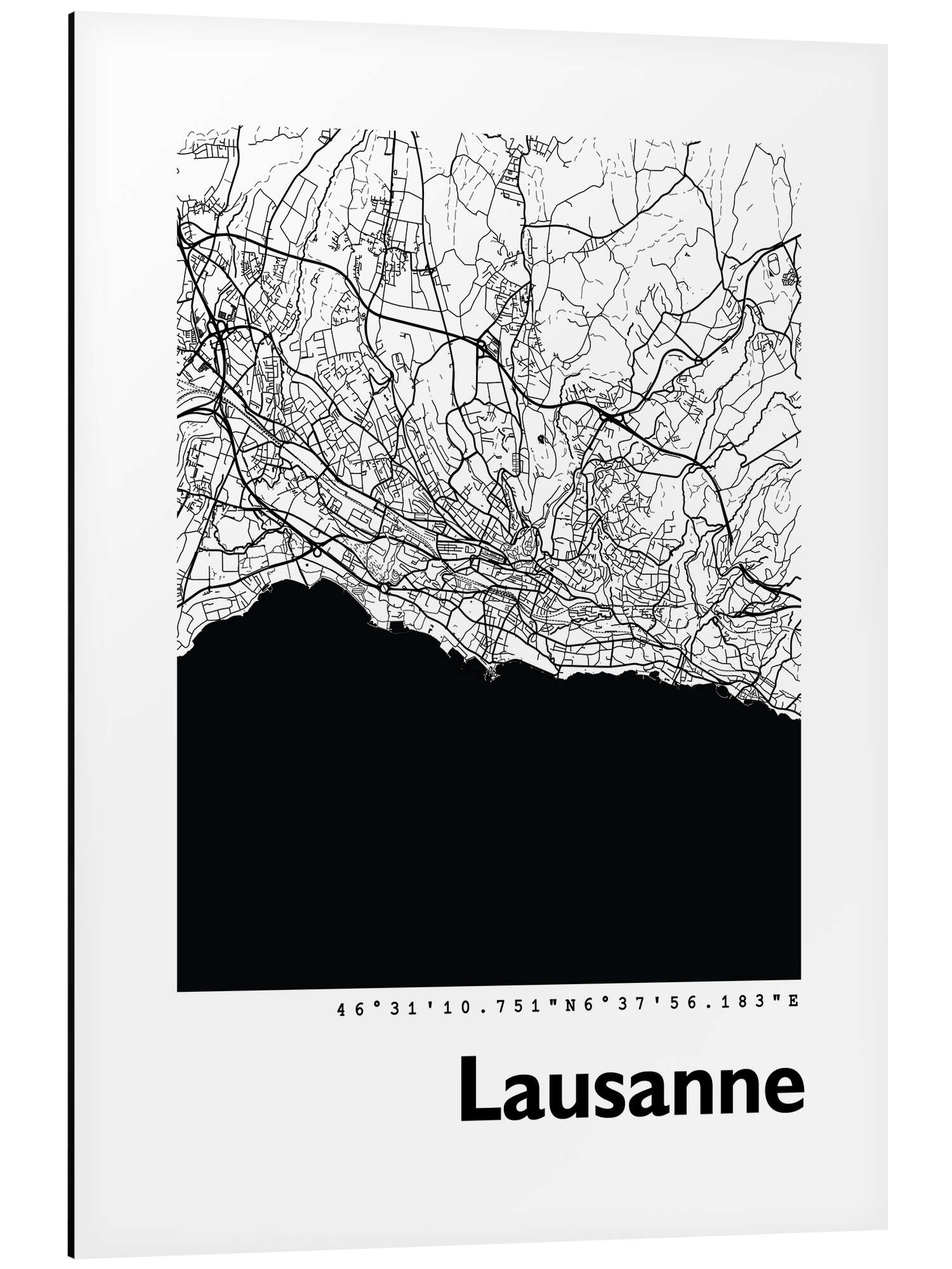 Posterlounge   Wandbilder   Schwarz-Weiß   44spaces   Magnettafel Karte von Lausanne
