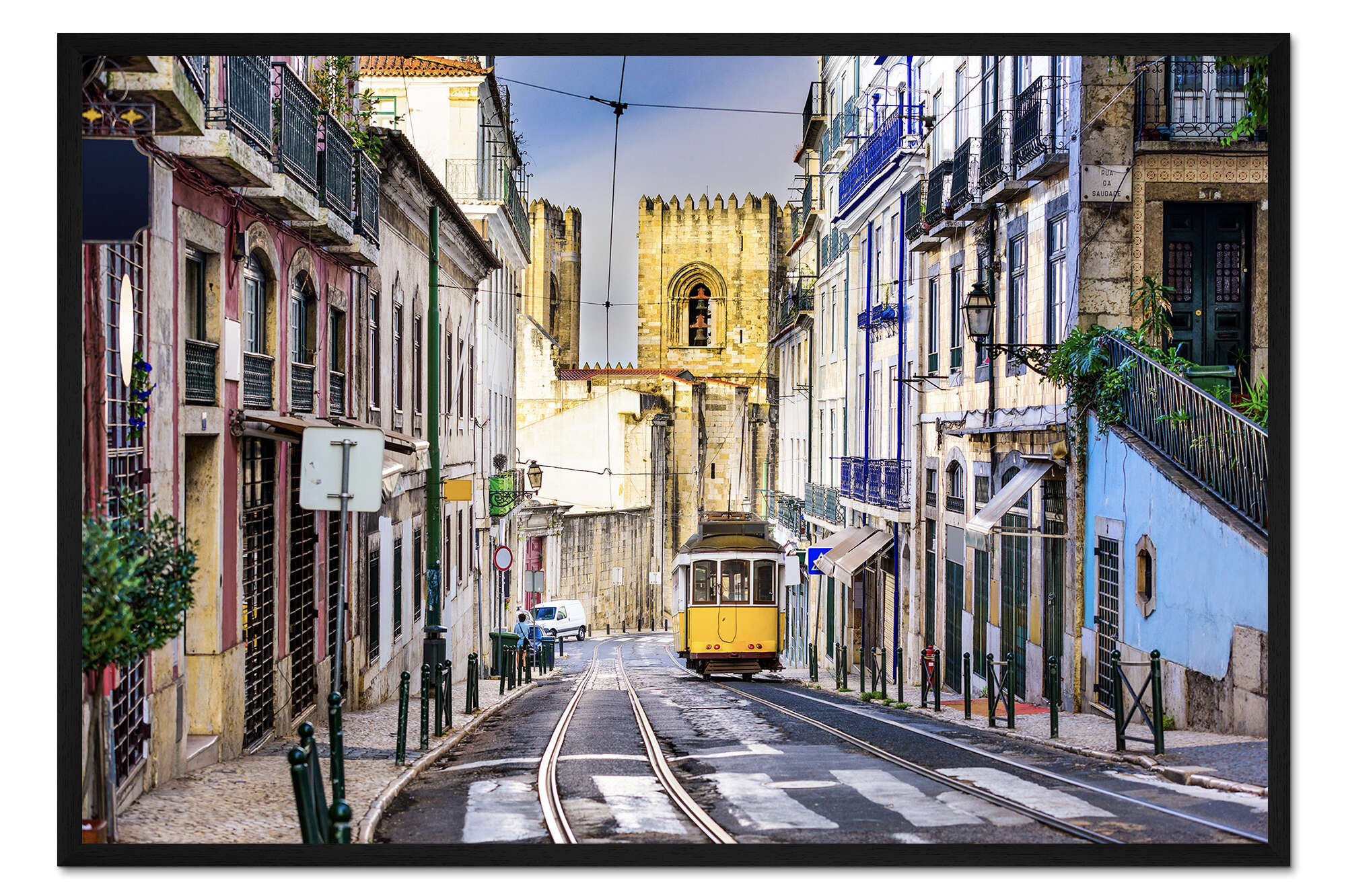 Posterlounge   Wandbilder   Fotografie   Gerahmter Kunstdruck Tram vor der Catedral Sé Patriarcal, Lissabon