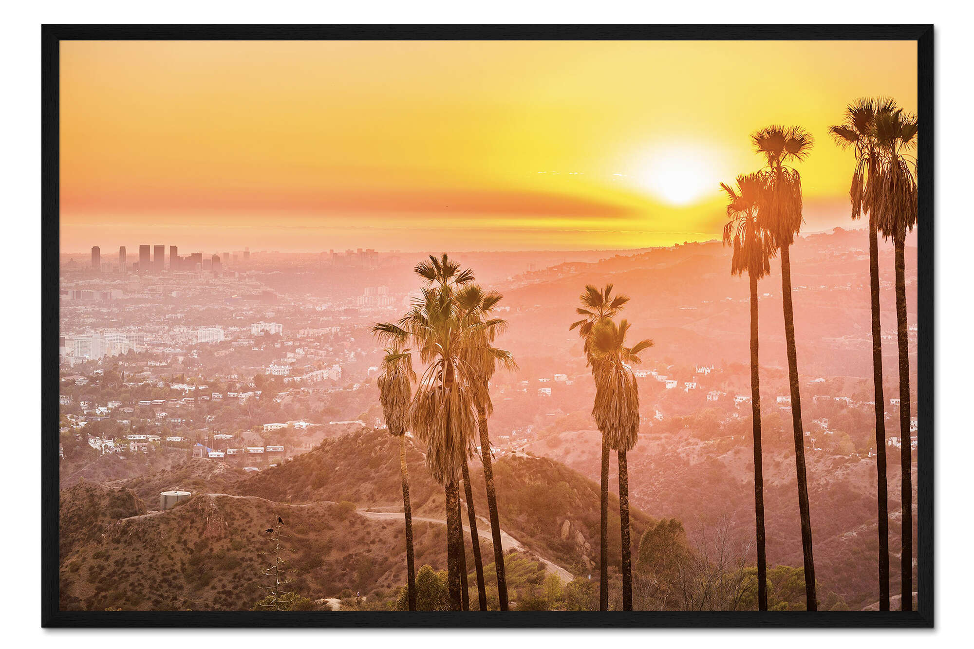 Posterlounge   Wandbilder   Orange   Gerahmter Kunstdruck Sonnenuntergang im Griffith Park, Los Angeles