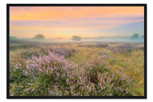 Posterlounge   Wandbilder   Fotografie   Michael Valjak   Gerahmter Kunstdruck Heidelandschaft im Nebel