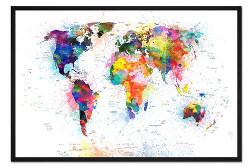 Posterlounge   Wandbilder   Karten   Land- & Weltkarten   Artbase79   Gerahmter Kunstdruck Weltkarte politisches Aquarell