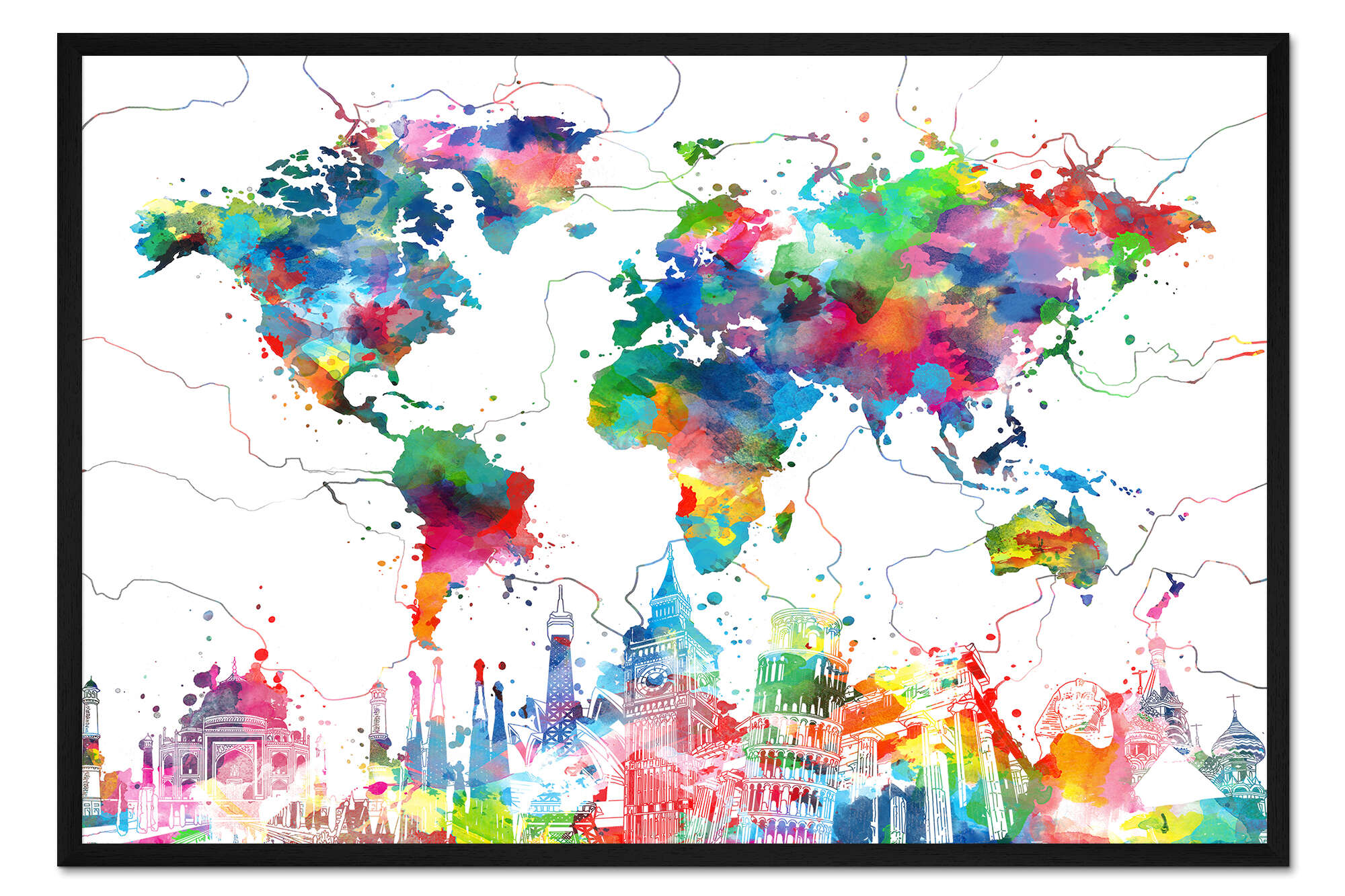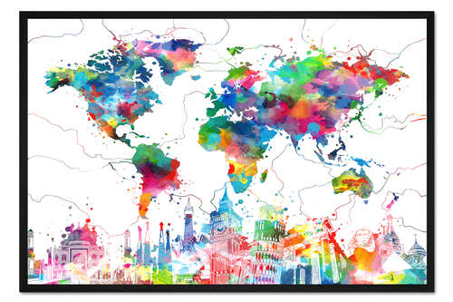Posterlounge   Wandbilder   Karten   Land- & Weltkarten   Artbase79   Gerahmter Kunstdruck Weltkarte Skyline